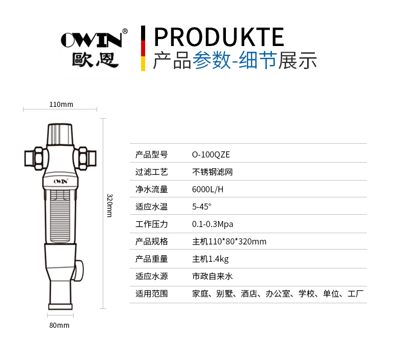 歐恩前置過濾器O-100QZE