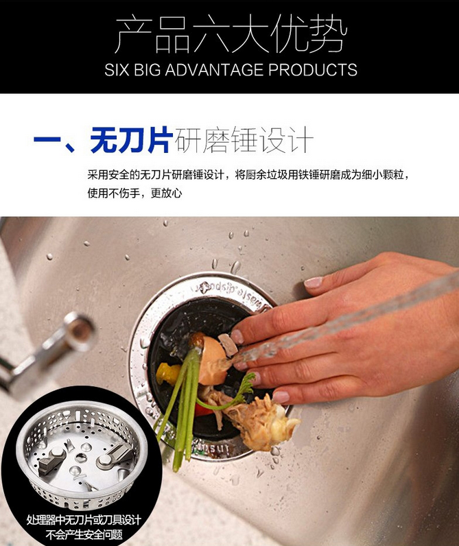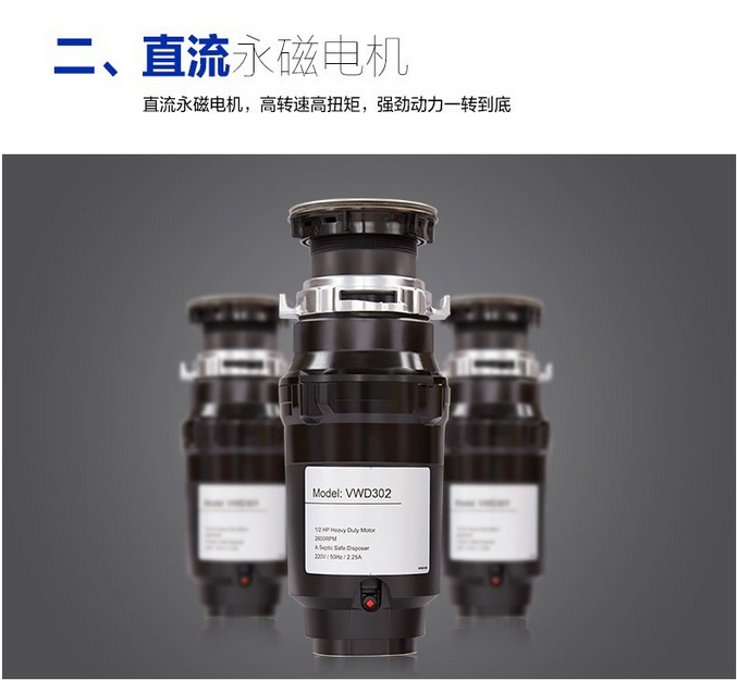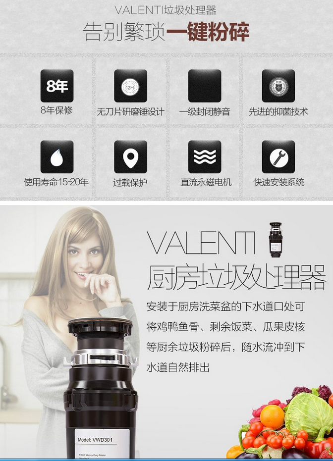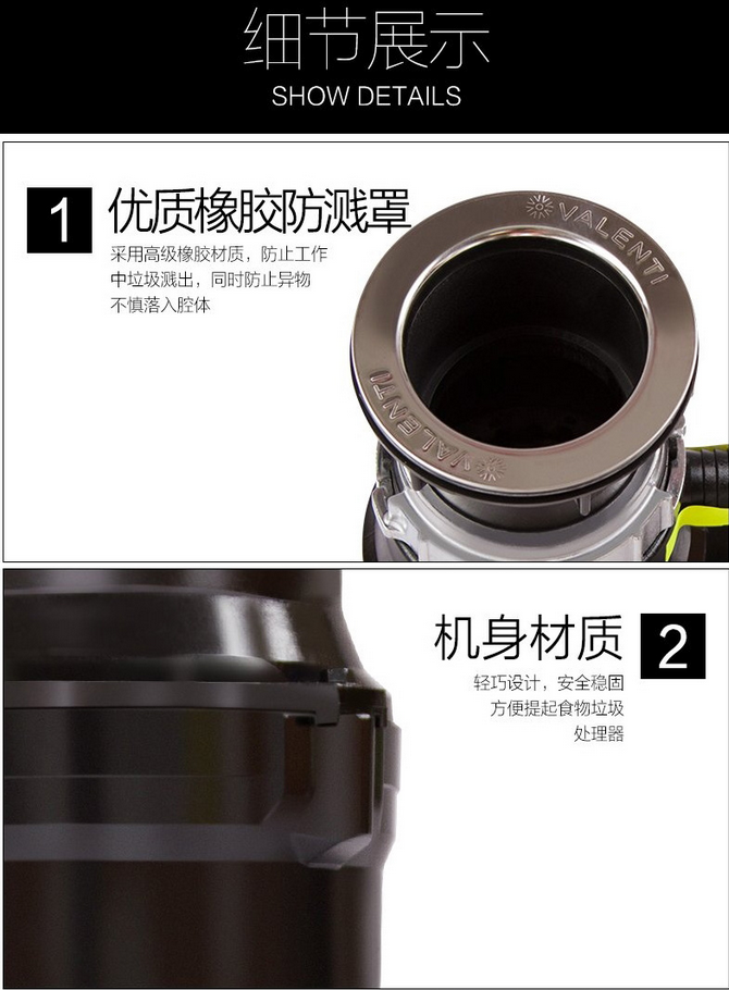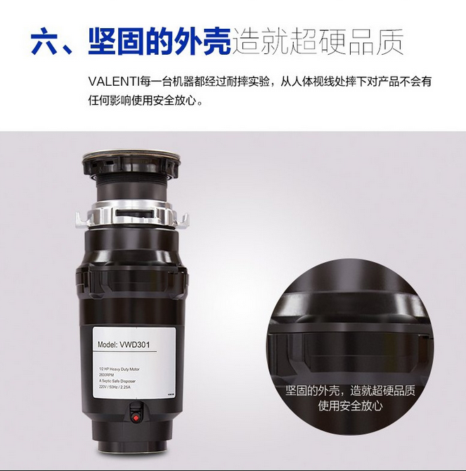 意大利VALENTI 家用廚房食物垃圾處理器標配版黑色VWD301