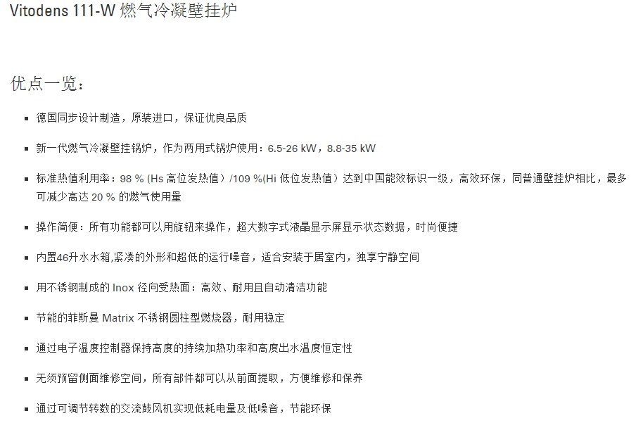 德國菲斯曼水箱內置式冷凝爐 Vitopend 111-W